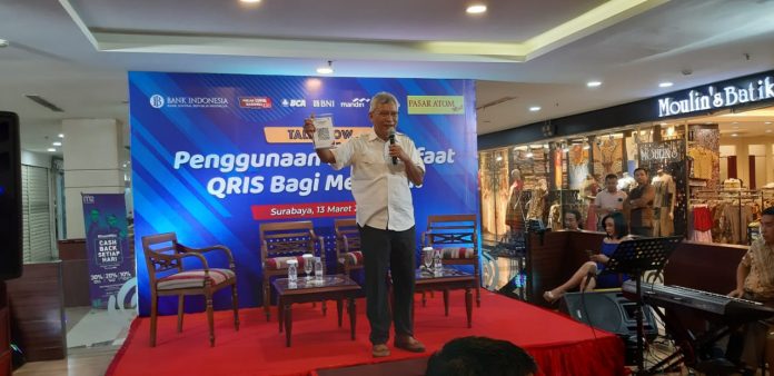 kalau pakai di luar itu misalnya harganya harus ada kembalian, dengan menggunakan QRIS harganya akan Pas, bisa direkap langsung masuk ke dalam merchant, minggu lalu sudah ada 114.000 merchant yang ada di surabaya yang sudah bergabung dengan PJSP menggunakan QRIS dan akan terus bertambah.” pungkasnya