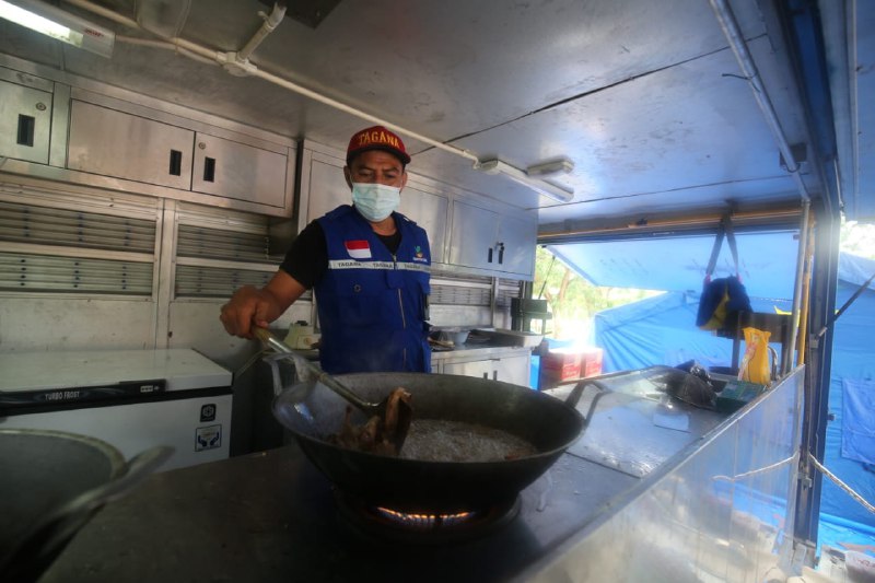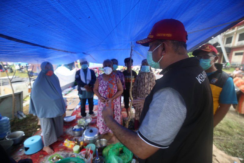 “Seluruh masakan kita sebarkan ke lokasi pengungsi atau bagi yang lokasi pengungsianya dekat bisa langsung mengambil”, jelas Direktur Perlindungan Sosial Korban Bencana Alam Kemensos, M Safii Nasution, di Sulbar, pagi ini.