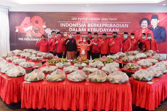 Sebelum pembagian tumpeng, imbuh Untari, jajaran pengurus DPD, dan anggota Fraksi PDI Perjuangan DPRD Jatim yang hadir di Wisma Perjuangan, mendengar arahan Megawati terkait peringatan HUT Partai secara daring.