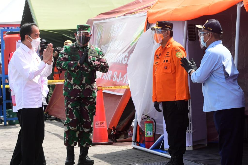 Setelah itu, Kepala Negara bersama Menteri Perhubungan, Kepala Basarnas, dan Kepala KNKT menuju tenda media TNI AL. Di tenda tersebut Presiden meninjau langsung situasi operasi laut evakuasi puing-puing pesawat Sriwijaya Air SJ 182 melalui konferensi video dengan dipandu oleh Kepala Staf TNI Angkatan Laut (KSAL) Laksamana Yudo Margono. Presiden juga menyimak langsung laporan dari anggota TNI yang tengah melakukan operasi pencarian di atas geladak KRI Rigel.