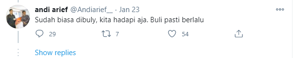 “Sudah biasa dibuly, kita hadapi aja. Buli pasti berlalu,” tulisnya dalam kolom komentar.