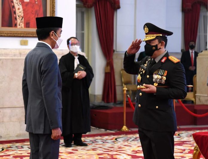 Jakarta | Nawacita – Presiden Joko Widodo pada Rabu, 27 Januari 2021, melantik dan mengambil sumpah jabatan Komisaris Jenderal Polisi Listyo Sigit Prabowo sebagai Kepala Kepolisian Negara Republik Indonesia (Kapolri). Acara pelantikan berlangsung di Istana Negara, Jakarta, dengan menerapkan protokol kesehatan.