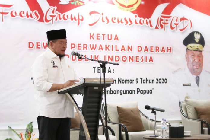 LaNyalla mengutarakan hal tersebut saat menjadi pembicara dalam Focus Group Discussion (FGD) bertema Implementasi Inpres Nomor 9 Tahun 2020 dalam Percepatan Pembangunan Papua. Kegiatan ini dilangsungkan di Ballroom Suni Garden Lake and Resort, Sentani, Kabupaten Jayapura, Papua. Rabu (3/2/2021)