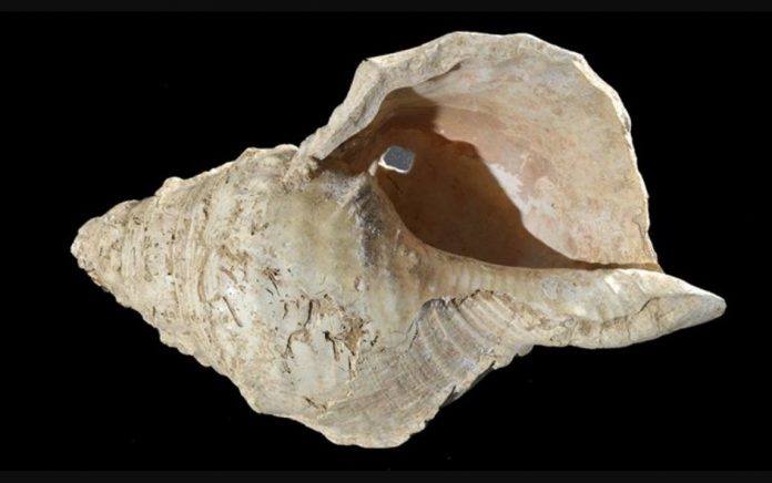 Cangkang itu pernah menjadi rumah bagi organisme hidup, kemungkinan siput air dingin di Samudra Atlantik bernama Charonia lampas.