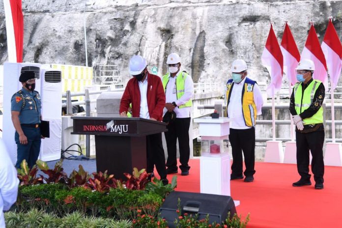 “Bendungan ini dibangun lima tahun yang lalu dari 2015 dan sekarang telah selesai,” ujar Presiden dalam sambutan peresmiannya.