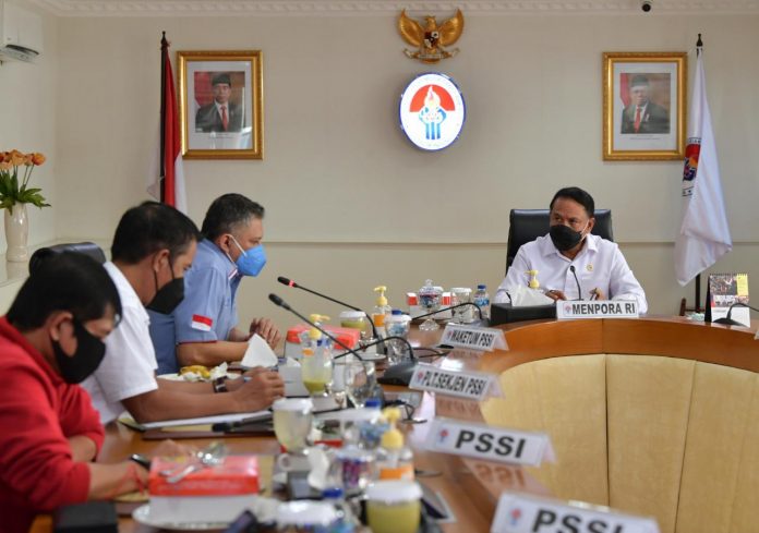 JAKARTA | NAwacita – Mendapat masukan dari sejumlah pihak terkait bahaya cluster Covid-19 di sepakbola Piala Menpora, langsung ditanggapi Menteri Pemuda dan Olahraga (Menpora) Zainudin Amali. Hal tersebut disampaikan usai menerima kedatangan sejumlah petinggi Persatuan Sepak Bola Seluruh Indonesia (PSSI) di ruang kerjanya, Gedung Kemepora, Lantai 10, Jakarta Pusat, Kamis (04/03/2021) siang.