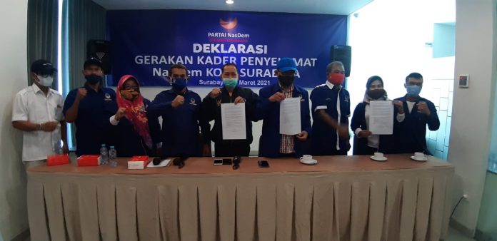 Surabaya, Nawacita – Polemik kisruhnya yang terjadi di kepengurusan DPD Partai NasDem Kota Surabaya yang berkepanjangan, membuat mantan-mantan pengurus dan kader melakukan ” Deklarasi Gerakan Kader Penyelamat Partai NasDem “, hari Sabtu (13/3/2021).
