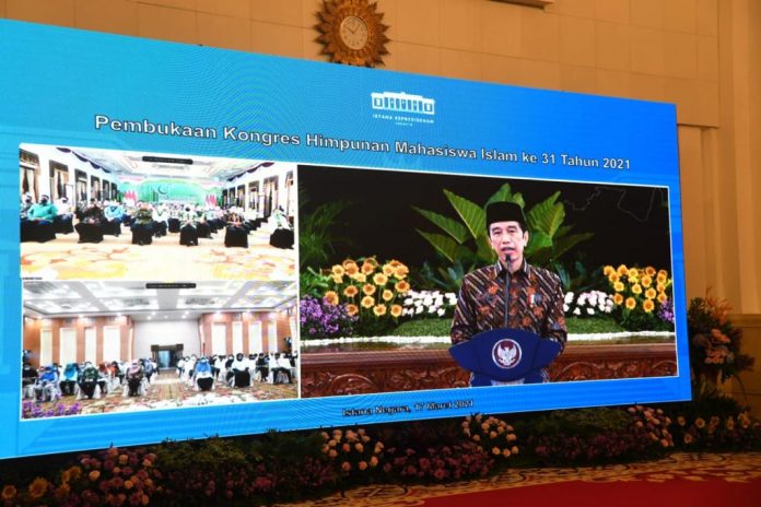 Nawacita – Presiden Joko Widodo secara virtual membuka Kongres XXXI Himpunan Mahasiswa Islam (HMI) Tahun 2021 dari Istana Negara, Jakarta, pada Rabu, 17 Maret 2021. Kongres yang digelar di Surabaya pada 17 hingga 22 Maret 2021 mendatang tersebut mengusung tema “Merajut Persatuan untuk Indonesia Berdaulat dan Berkeadilan”.