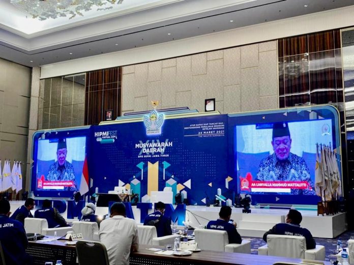 Hal tersebut disampaikan saat menjadi pembicara utama secara virtual, dalam Musyawarah Daerah ke-XIV BPD Himpunan Pengusaha Muda Indonesia (HIPMI) Jawa Timur dengan tema; ‘Mengakselerasi Pemulihan Ekonomi Daerah di Masa Pandemi Covid-19’, Rabu (24/3/2021).