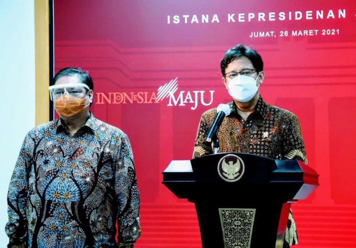 Hal itu disampaikan oleh Menteri Kesehatan (Menkes) Budi Gunadi Sadikin yang memberikan keterangan bersama Menteri Koordinator Bidang Perekonomian Airlangga Hartarto selepas rapat terbatas dengan Presiden dan jajaran kabinet terkait di Kantor Presiden, Jakarta, pada Jumat, 26 Maret 2021.