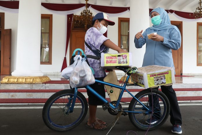 Surabaya, Nawacita – Gubernur Jawa Timur Khofifah Indar Parawansa memberikan perhatian pada Rangga Supriyadi (11), siswa kelas V SD asal Kupang Krajan Kota Surabaya, yang berjualan donat keliling untuk membantu ekonomi keluarga di tengah masa pandemi covid-19.