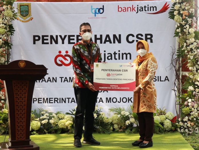 Nawacita | Mojokerto – Sebagai bentuk Tanggung Jawab Sosial Perusahaan kepada masyarakat,  PT Bank Pembangunan Daerah Jawa Timur Tbk. (bankjatim) menyerahkan Corporate Social Responsibility(CSR) bankjatim peduli dalam bentuk Penataan Taman Benteng Pancasila tahap 1 kepada Pemerintah Kota Mojokerto (01/04/21).
