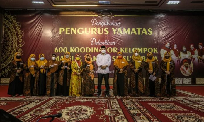 Surabaya, Nawacita – Wali Kota Surabaya Eri Cahyadi menghadiri acara Pengukuhan Pengurus Yamatas dan Pelantikan 600 Koordinator Kelompok Majelis Taklim se-Surabaya, di Gedung Convention Hall, Jalan Arif Rahman Hakim, Sabtu (10/4/2021).