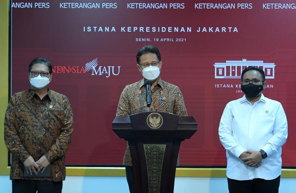 Hal tersebut disampaikan oleh Menteri Koordinator Bidang Perekonomian sekaligus Ketua Komite Penanganan Covid-19 dan Pemulihan Ekonomi Nasional (KPCPEN) Airlangga Hartarto dalam keterangannya di Kantor Presiden, Jakarta, Senin, 19 April 2021, seusai mengikuti rapat terbatas bersama Presiden Joko Widodo dan jajaran Kabinet Indonesia Maju.