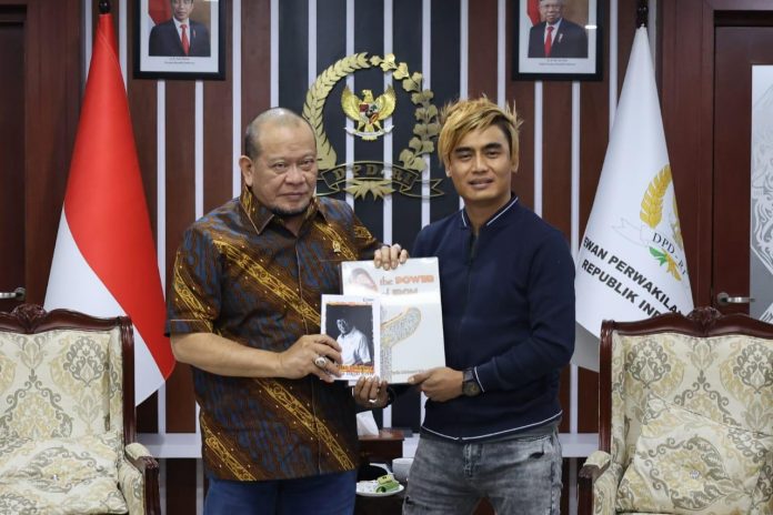 Jakarta, Nawacita – Ketua DPD RI, AA LaNyalla Mahmud Mattalitti, menerima kunjungan musisi eks vokalis band ST12, Charly Van Houten, di kantor DPD RI, Jakarta, Rabu (2/6/2021).