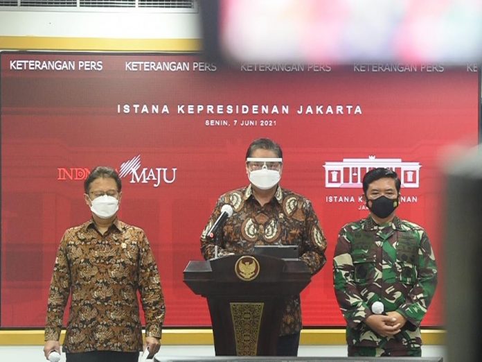 Demikian disampaikan oleh Menteri Koordinator Bidang Perekonomian, Airlangga Hartarto, dalam keterangan pers bersama Menteri Kesehatan Budi Gunadi Sadikin, Panglima TNI Marsekal Hadi Tjahjanto, Kapolri Jenderal Listyo Sigit Prabowo, dan Kepala BNPB Ganip Warsito di Kantor Presiden, Jakarta, Senin, 7 Juni 2021, selepas mengikuti rapat terbatas bersama Presiden.
