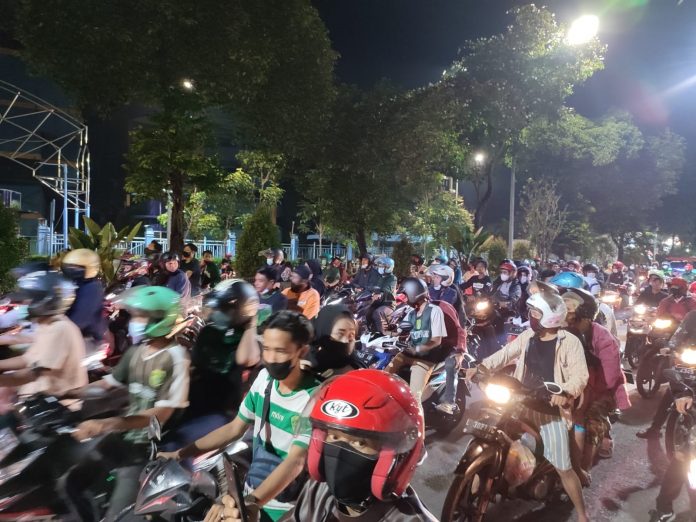 Surabaya, Nawacita – Ribuan suporter Persebaya Surabaya, Bonek Mania, memadati jalanan sekitar Stadion Gelora Sepuluh Nopember, Tambaksari Surabaya, Kamis (17/6) malam. Aksi itu mereka lakukan jelang peringatan hari ulang tahun klub kebanggaannya yang ke-94.