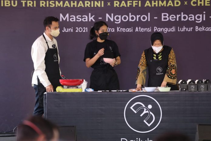 Jakarta, Nawacita – MINGGU (20/06/2021)* Menteri Sosial Tri Rismaharini tampil bareng selebritas ternama Raffi Ahmad dan Chef Renatta Moeloek. Selain untuk demo masak, Bu Risma juga memanfaatkan kesempatan itu untuk memotivasi para penerima manfaat di seluruh Indonesia.
