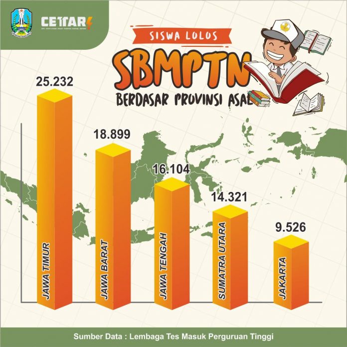 Surabaya, Nawacita –  (21 Juni 2021) – Alhamdulillah, Pengumuman hasil Seleksi Bersama Masuk Perguruan Tinggi Negeri (SBMPTN) 2021 telah diumumkan secara online, Senin (14/6). Hasilnya, Provinsi Jawa Timur menyumbang pendaftar dengan jumlah peserta lulus terbanyak di SBMPTN 2021 pada jalur  reguler maupun Kartu Indonesia Pintar (KIP) Kuliah.