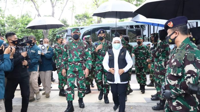 Gubernur Jatim Khofifah Indar Parawansa, Pangdam V/Brawijaya Mayor Jenderal TNI Suharyanto, Waka Polda Jatim Brigjen Pol Slamet Hadi Supraptoyo, dan Pangkoarmada II Laksda TNI Dr. Iwan Isnurwanto, mendampingi kunjungan Kasal dan Kakor Sabhara dalam meninjau pelaksanaan vaksinasi, warga surabaya khususnya pekerja Pelabuhan Tanjung Perak Surabaya.