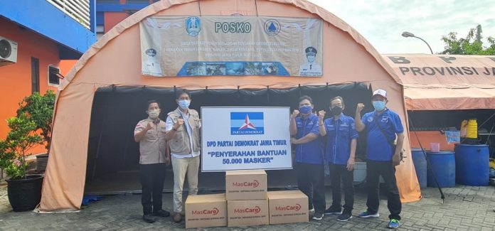 Nawacita | SURABAYA – Partai Demokrat melakukan aksi nyata menurunkan kasus covid- 19 di Jatim yang saat ini masih menunjukkan kenaikan kasus. Perwakilan DPD Partai Demokrat Jatim mendatangi Kantor BPBD Jatim untuk memberikan bantuan 50 ribu masker, Jum’at (09/07/21).