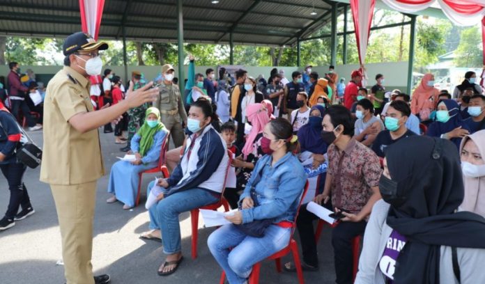 “Tunggu giliran dan sabar sehingga semuanya ini bisa dilakukan dengan baik. Tidak usah panik. Semuanya akan cukup. Ke depan kami akan buat tiga tempat vaksinasi massal lagi,” kata Gus Muhdlor setelah meninjau vaksinasi massal di Yon Arhanud 8, Gedangan.