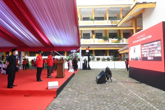 “Bagus. Door to door ini bagus artinya kita mendatangi dari rumah ke rumah yang ingin vaksin segera disuntik. Saya kira program dari rumah ke rumah ini bagus sekali. Terima kasih juga untuk Ketua RT yang juga telah ikut berpartisipasi mendorong warganya agar ikut vaksinasi,” ucap Presiden saat berdialog dan meninjau acara vaksinasi untuk pelajar dan vaksinasi dari rumah ke rumah melalui konferensi video pada Rabu, 14 Juli 2021.