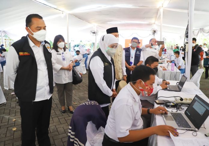 Khofifah hadir didampingi Wali Kota Surabaya Eri Cahyadi, Kabinda Jatim Marsma TNI Rudy Iskandar, Kepala Dinas Pendidikan Provinsi Jawa Timur Wahid Wahyudi, dan Kepala Dinas Kesehatan Herlin Ferliana. Vaksinasi yang dilaksanakan di SMA Negeri 5 Kota Surabaya tersebut menargetkan sebanyak 996 pelajar. Mulai dari kelas X, XI, dan XII yang terbagi dalam tiga tahap.