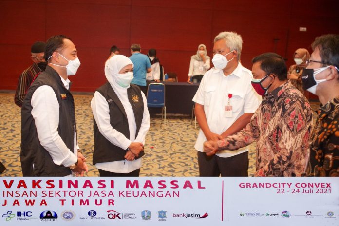 Surabaya, Nawacita- 22 Juli 2021. OJK dan Industri Jasa Keuangan (IJK) di Jawa Timur kembali menyelenggarakan vaksinasi Covid-19 dengan target 30.000 orang peserta terdiri dari Pegawai IJK, Keluarga Pegawai IJK (usia>=12) dan nasabah IJK (>=12) mulai tanggal 22-24 Juli 2021 di Grand City Convention & Exhibition Surabaya.