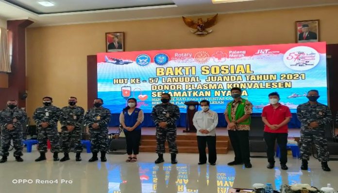 Dalam rangka memperingati HUT Lanudal Juanda ke 57 dan HUT Jalasenastri ke 75, Lanudal Juanda mengelar Bhaksos Donor Darah Plasma Konvalesen, Kamis (5/8).