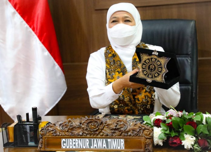 JOMBANG, Nawacita – 26 Agustus 2021 – Gubernur Jawa Timur Khofifah Indar Parawansa bersama kepala perwakilan BI Jatim dan Walikota Mojokerto melaunching secara resmi kegiatan Festival Majapahit 2021 dalam rangkaian Gerakan Nasional Bangga Buatan Indonesia (GBBI) yang diinisiasi oleh Bank Indonesia, secara daring di Pendopo Kab. Jombang, Rabu (25 Agustus 2021)