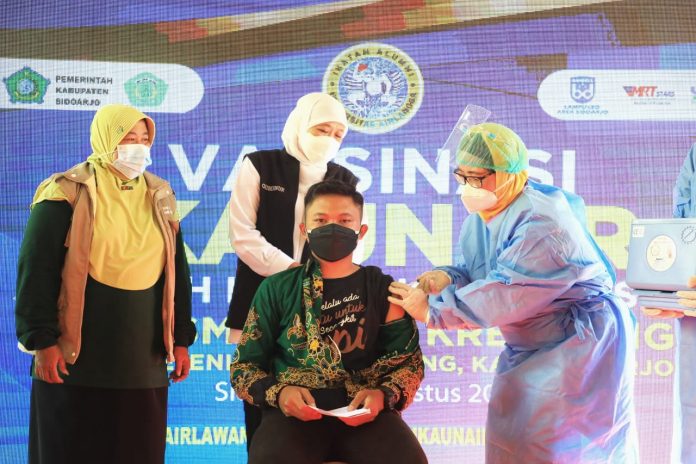 Sidioarjo, Nawacita – Pemprov Jatim Gelar 57 Ribu Dosis Vaksinasi Sidoarjo – 28 Agustus 2021, Berbagai langkah mempercepat pelaksanaan vaksinasi bagi pelajar terus dilakukan. Untuk itu, Pemerintah Provinsi Jawa Timur (Pemprov Jatim) kembali menggelar vaksinasi serentak bagi SMA/SMK se-Jatim.