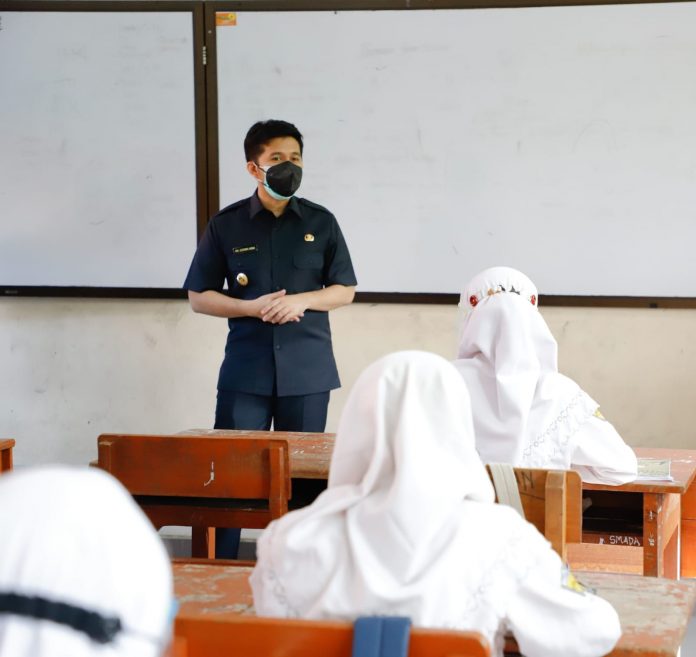 Di SMAN 02 Lamongan, Wagub Emil menyempatkan untuk berdialog dan menyapa beberapa siswa. Baik yang hadir di kelas secara fisik pun virtual.