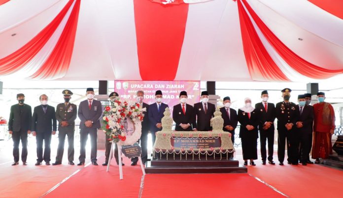 Dimulai dengan khidmat, upacara ziarah lalu diikuti dengan penghormatan, mengheningkan cipta, peletakan karangan bunga, serta tabur bunga di pusara Mantan Gubernur M. Noer.