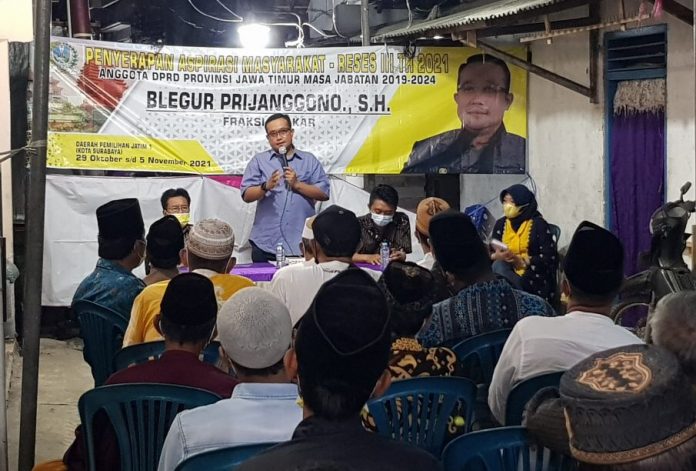 Hal itu dibuktikan oleh Blegur Prijanggono anggota DPRD Jatim Dapil Surabaya saat menggelar Reses III tahun 2021 di RW IX Kelurahan Ujung Kecamatan Semampir Kota Surabaya pada Senin (1/11/2021) malam.