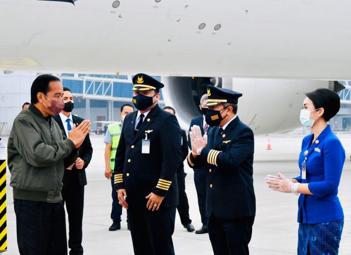 Tangerang, Nawacita – Tepat pukul 08.30 WIB, Pesawat Garuda Indonesia-1 yang membawa Presiden Joko Widodo dan rombongan mendarat di Bandar Udara Internasional Soekarno Hatta, Tangerang, Banten, Jumat 5 November 2021.