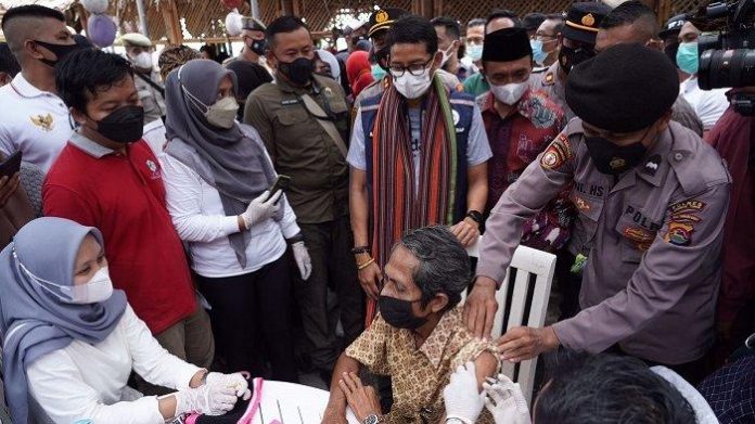 Kegiatan vaksinasi tersebut turut dihadiri Menteri Pariwisata dan Ekonomi Kreatif (Menparekraf) Sandiaga Salahuddin Uno. Warga menyambut keberadaan mantan wakil gubernur DKI itu dengan Tarian Presean.