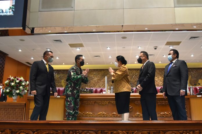 Jakarta, Nawacita – Dewan Perwakilan Rakyat (DPR) melaksanakan Rapat Paripurna masa persidangan II Tahun 2021-2022 perihal laporan Komisi I DPR RI atas hasil uji kelayakan dan kepatutan atau fit and proper test terhadap calon Panglima TNI dilanjutkan dengan pengambilan keputusan, Senin (8/11).