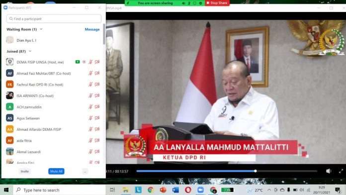 Pada acara yang diselenggarakan secara virtual itu, LaNyalla mengatakan partai politik besar dan gabungan partai politik menjadi pendukung presiden terpilih. Sehingga yang terjadi adalah bagi-bagi kekuasaan dan partai politik melalui fraksi di DPR menjadi legitimator kebijakan pemerintah.