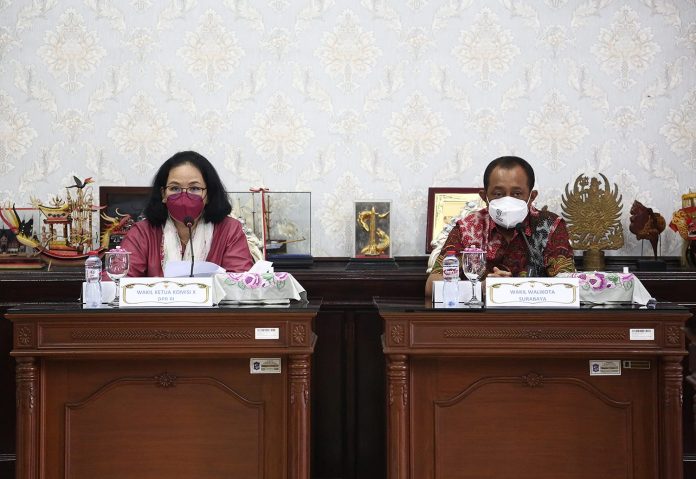 Surabaya, Nawacita – Pembelajaran Tatap Muka (PTM) yang diterapkan oleh Pemerintah Kota (Pemkot) Surabaya diapresiasi banyak pihak. Kali ini, Komisi X Dewan Perwakilan Rakyat Republik Indonesia (DPR RI) bidang Pendidikan, Olahraga, dan Sejarah memberikan apresiasi itu saat berkunjung ke Balai Kota Surabaya, Jumat (26/11/2021).