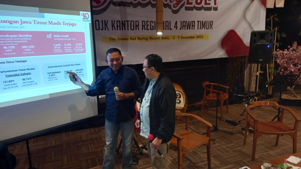Surabaya, Nawacita 3 Desember 2021. OJK Kantor Regional 4 Jawa Timur menyelenggarakan kegiatan media gathering 2021 di Kota Batu (1/12) bersama dengan perwakilan insan media di Jawa Timur. Kegiatan ini dilakukan untuk meningkatkan sinergi antara OJK dengan media serta sebagai salah satu sarana untuk menyampaikan perkembangan industri jasa keuangan khususnya Jawa Timur.