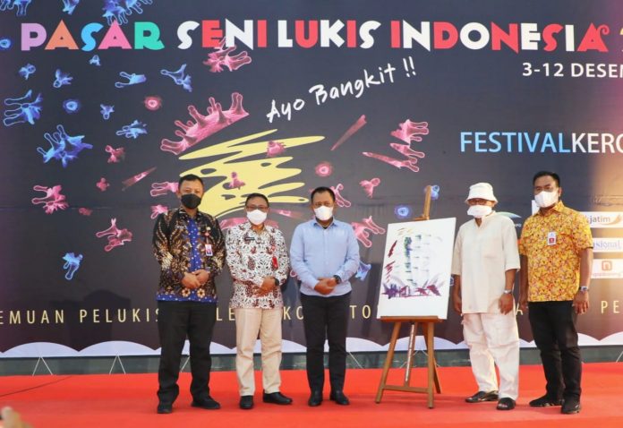 Surabaya, Nawacita 3 DESEMBER 2021 Setelah vakum dua tahun akibat pandemi Covid-19, Pasar Seni Lukis Indonesia (PSLI) tahun 2021 yang diselenggarakan Pemerintah Provinsi Jawa Timur dan Sanggar Merah Putih akhirnya kembali digelar dan dibuka Plh Sekretaris Daerah Heru Tjahjono di Gedung JX Internasional, Jalan Ahmad Yani 99, Surabaya, Jumat (3/12).