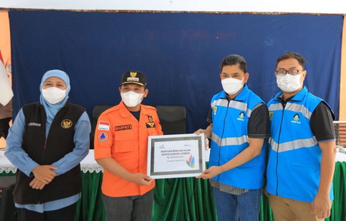Pasca erupsi Gunung Semeru (4/12), PLN melalui program PLN Peduli yang diwakili Senior Manager Komunikasi dan Umum PLN UID Jawa Timur, A Rasyid Naja menyerahkan bantuan senilai Rp 300 juta kepada Bupati Lumajang, Thoriqul Haq, disaksikan langsung oleh Gubernur Jawa Timur, Khofifah Indar Parawansa di Kantor Kecamatan Pasirian, Lumajang pada Minggu (5/12).