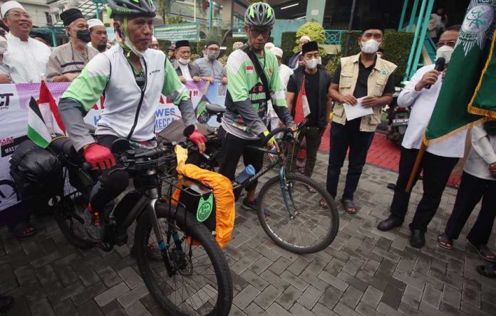 Keduanya sudah berangkat dari tempat tinggalnya sejak Sabtu (11/12), untuk menempuh jarak sekitar 12.500 kilometer (km) jalur darat dan 750 km jalur laut. Perjalanan bersepeda diperkirakan menempuh waktu sekitar enam bulan. Tjahja mengusung tema Bike for Ibadah untuk perjalanan yang ditempuhnya kali ini.