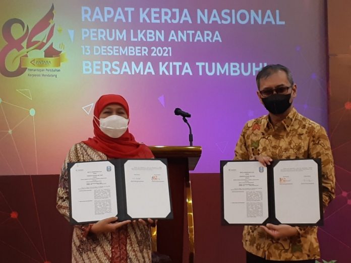 Gubernur Khofifah Tandatangani Kerjasama Media Layanan Informasi Publik dengan LKBN ANTARA
