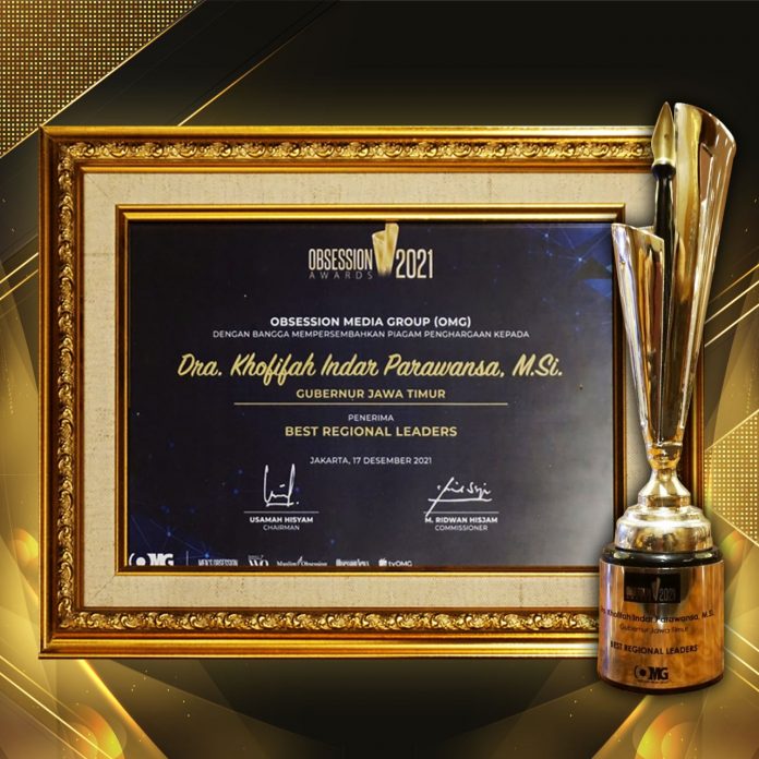 JAKARTA, Nawacita – 19 Desember 2021 – Prestasi gemilang kembali ditorehkan Gubernur Jatim Khofifah Indar Parawansa atas berbagai upaya yang dilakukannya dalam menangani pandemi Covid-19 dan dampak ekonomi yang diakibatkan. Kali ini, Gubernur Khofifah menorehkan penghargaan dalam ajang Obsession Award 2021 dengan kategori Best Regional Leaders.