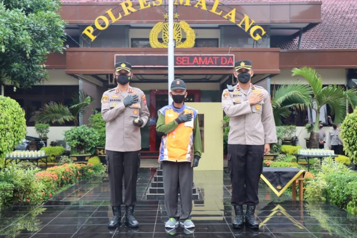 Pemberian penghargaan tersebut diberikan langsung oleh Kapolres Malang, AKBP Bagoes kepada Agus Suyitno atau (biasa dipanggil Pak Yit) di Lapangan Satya Haprabu Mapolres Malang, Senin (20/12/2021).