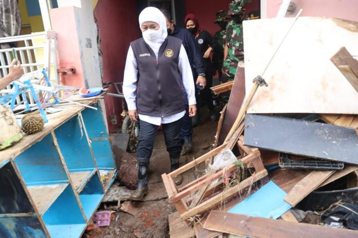 Khofifah mengapresiasi kerjasama dan gotong royong antara Pemkab dengan TNI-Polri bersama warga dalam menangani dampak  banjir bandang. Sehingga dalam waktu cepat sebagian besar rumah sudah bersih kembali seperti semula. Sementara yang terdampak berat bahkan rumah yang temboknya jebol atau  atap rumah rusak akan di identifikasi untuk direhab.