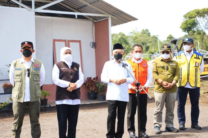 Lumajang (14 Januari 2022) – Wakil Presiden (Wapres) KH. Ma’ruf Amin meninjau progres pembangunan hunian sementara (Huntara) di kawasan relokasi bagi warga terdampak erupsi Gunung Semeru di Desa Sumber Mujur, Kecamatan Candipuro, Kabupaten Lumajang, Jawa Timur, Jumat (14/1/2022).