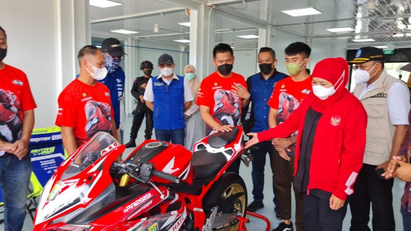 MANDALIKA – Nawacita– Sesi terakhir test lintasan Sirkuit Internasional Mandalika, pembalap kebanggaan Indonesia Mario Surya Aji mendapat suntikan penyemangat. Gubernur Jawa Timur Khofifah Indar Parawansa meninjau langsung latihan Mario. Pembalap Indonesia satu-satunya itu akan mengikuti Grand Prix (GP} kelas Moto3 yang mulai digeber bulan depan. Mario bergabung dengan Team Honda Asia yang bermarkas di Barcelona, Spanyol.